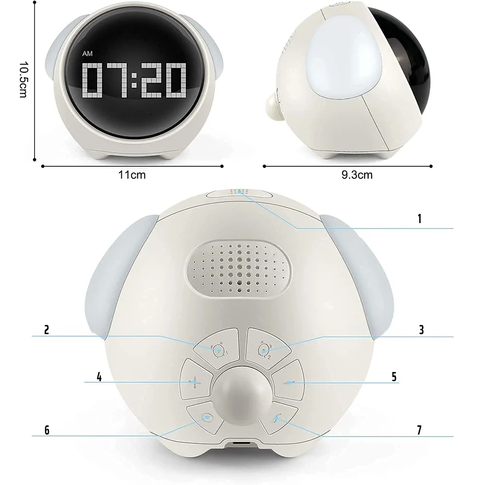 - -Interaktive Emoticons: Helfen Sie Kindern, die Uhrzeit zu verstehen und ihnen gute Schlafgewohnheiten beizubringen. -Multifunktionalität: Wecker, Uhr, Nachtlicht, Thermometer und Timer in einem. - Sprachaktivierung: Schalten Sie das Licht mit einem Klats