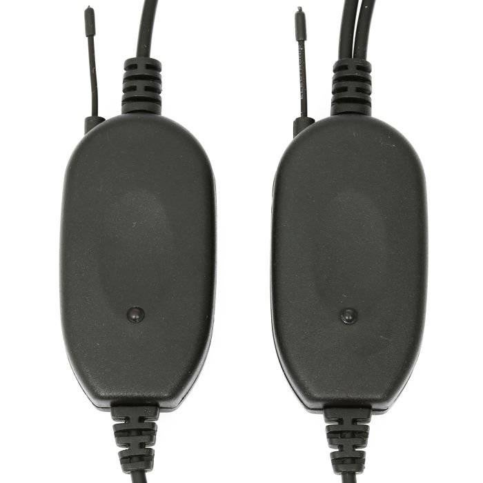 Mit dem Transmitter muss kein Signalkabel durch das gesamte Fahrzeug verlegt werden, sodass die elektrische Anlage des Autos nicht verändert wird. Ein zusätzlicher Vorteil ist der Stromanschluss für die Kamera, der direkt aus dem Sender geführt wird – so kann die Kamera ohne weitere Installationen mit Strom versorgt werden. Die maximale Reichweite des Transmitters beträgt 100 Meter, kann jedoch bei dichter Bebauung oder bei anderen Geräten auf derselben Frequenz sowie bei elektromechanischen Störungen kürzer sein.