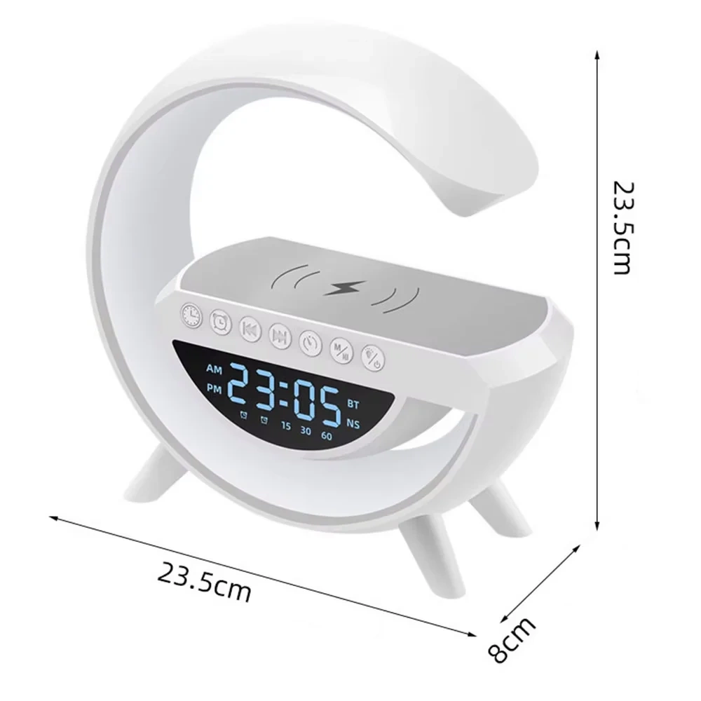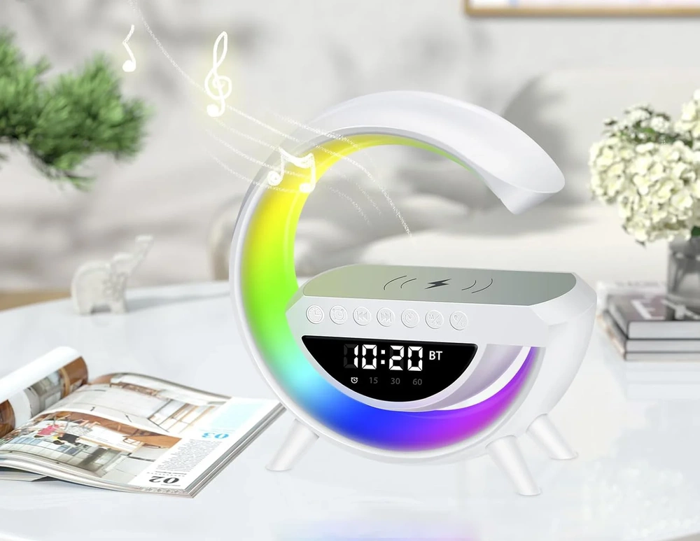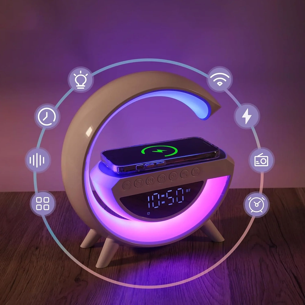 - -15W kabelloses Laden: Schnelles und bequemes Laden von Smartphones ohne Kabel. -Bluetooth-Lautsprecher: Hohe Klangqualität und die Möglichkeit, Musik von Geräten abzuspielen. -Farbenfrohe Beleuchtung: 13 Farbmodi mit einstellbarer Helligkeit für eine sti