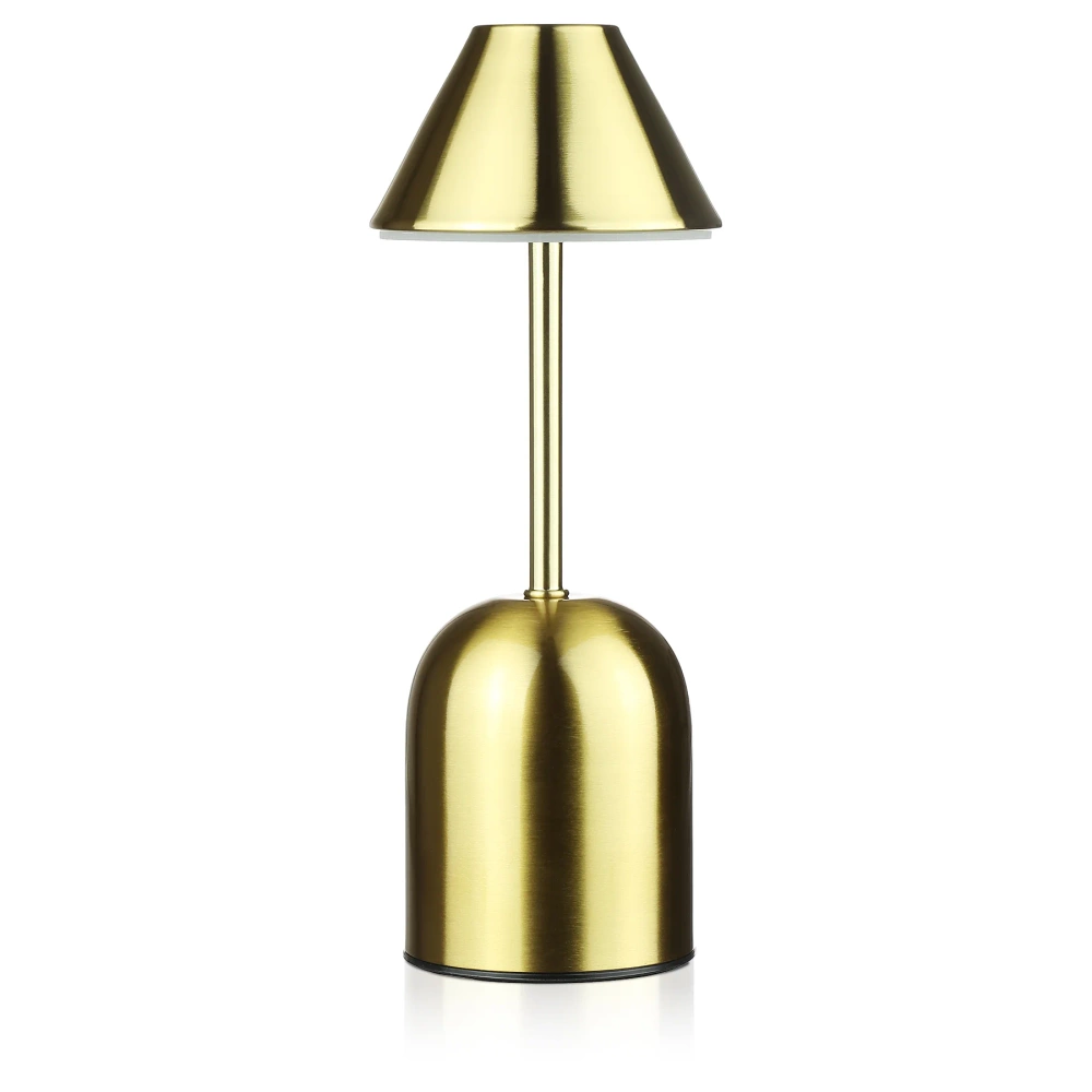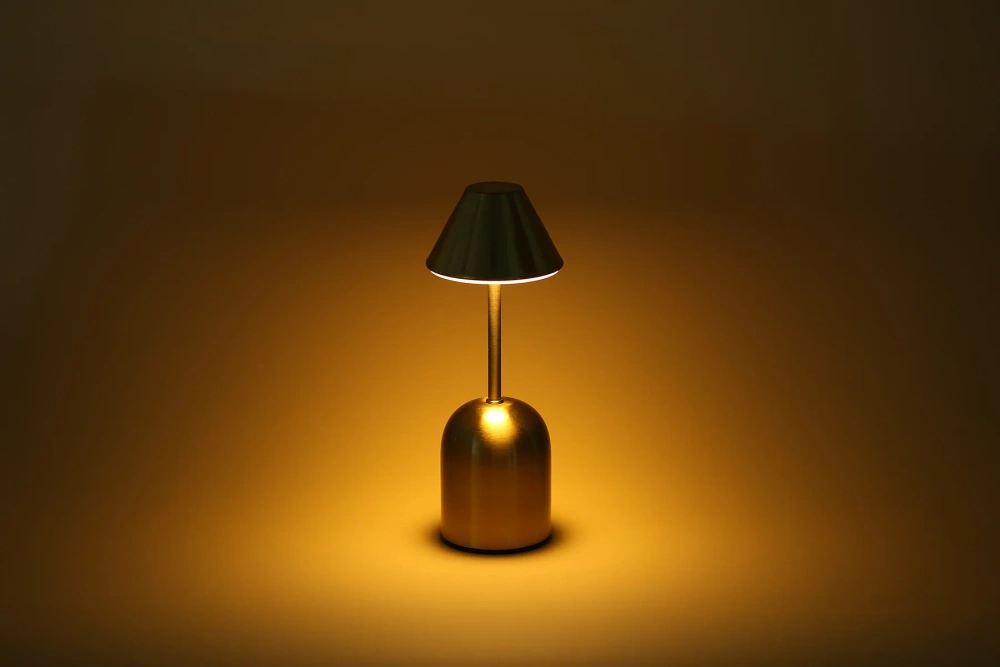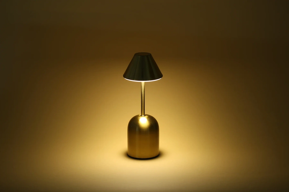 - -Elegantes goldfarbenes Metallgehäuse. -Berührungsempfindliche Einstellung von Lichtfarbe und Helligkeit. -2000 mAh Akku – funktioniert kabellos. -Multifunktional – für Haus, Garten, Restaurants und Hotels.