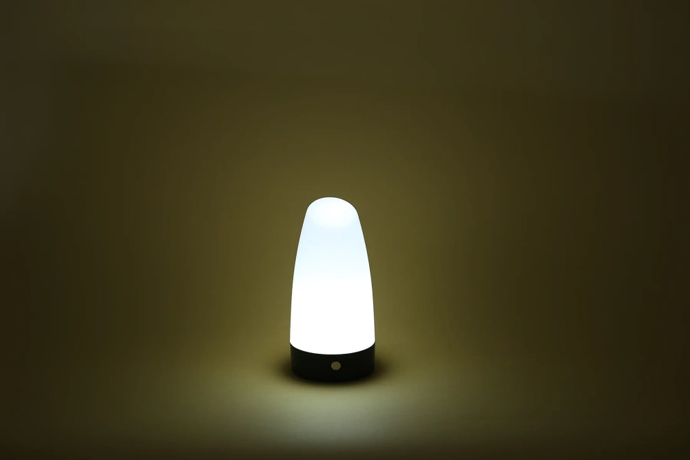 Die Helligkeit der Lampe wird stufenlos durch Halten des Touch-Schalters geregelt. Ein kurzes Antippen ändert die Lichtfarbe.