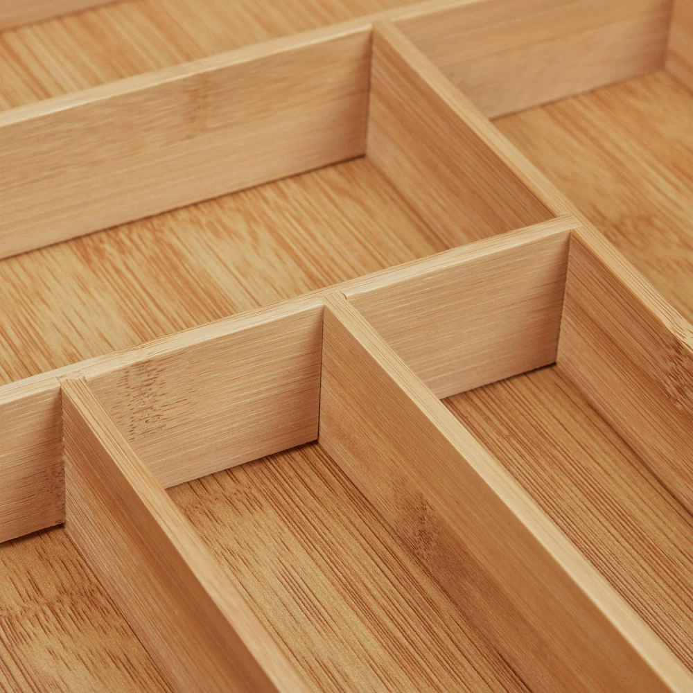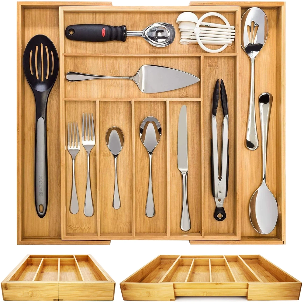 Besteckkasten | Bambus, ausziehbarer Schubladeneinsatz XXL mit 9 Fächern | KBT-G944