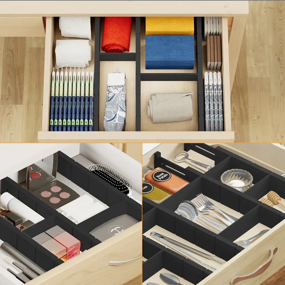 Dank der verstellbaren Länge passen sich die Trenner den meisten Standardschubladen an und helfen, Ordnung in der Küche, im Schlafzimmer, Bad oder Büro zu halten.