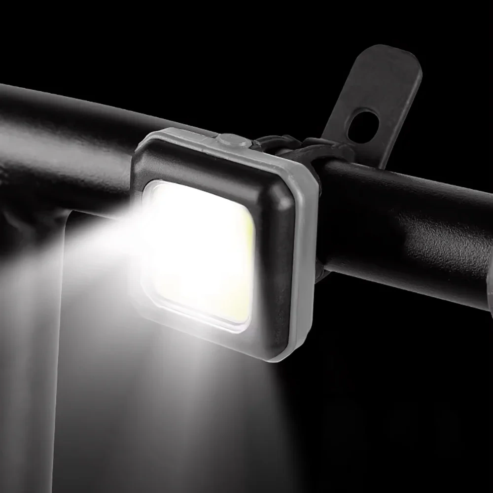 Leichte und robuste Fahrradlampe mit einer starken weißen LED-COB-Lichtquelle und einer Helligkeit von bis zu 130 Lumen.