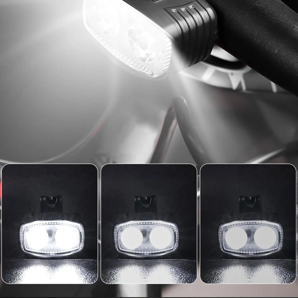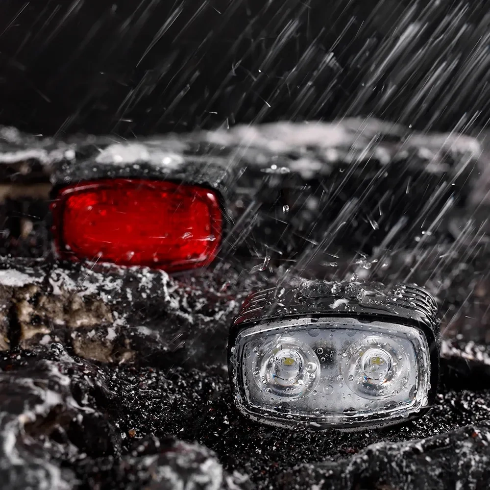 Das Set aus weißem Frontlicht und rotem Rücklicht ist Ihr zuverlässiger Begleiter bei jeder Fahrt, unabhängig von der Tageszeit.
