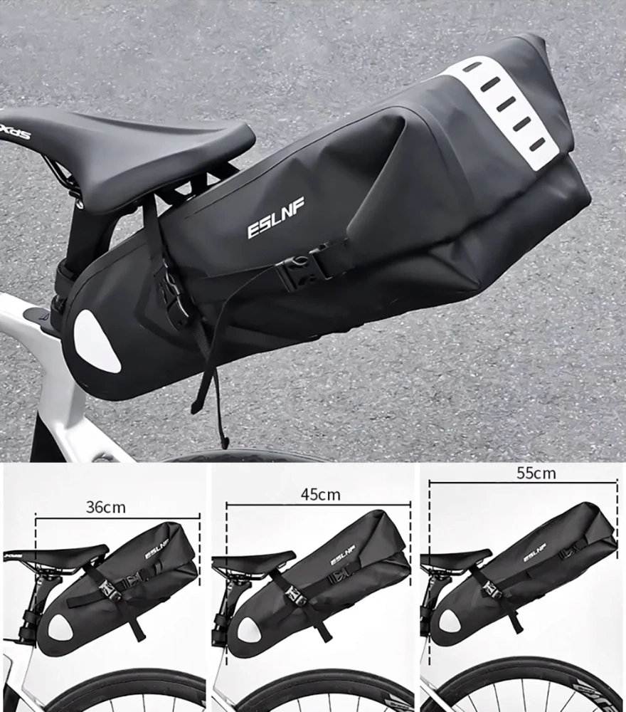 Entdecken Sie die Revolution in der Aufbewahrung von Fahrradausrüstung mit der wasserdichten Satteltasche mit 10 Litern Fassungsvermögen