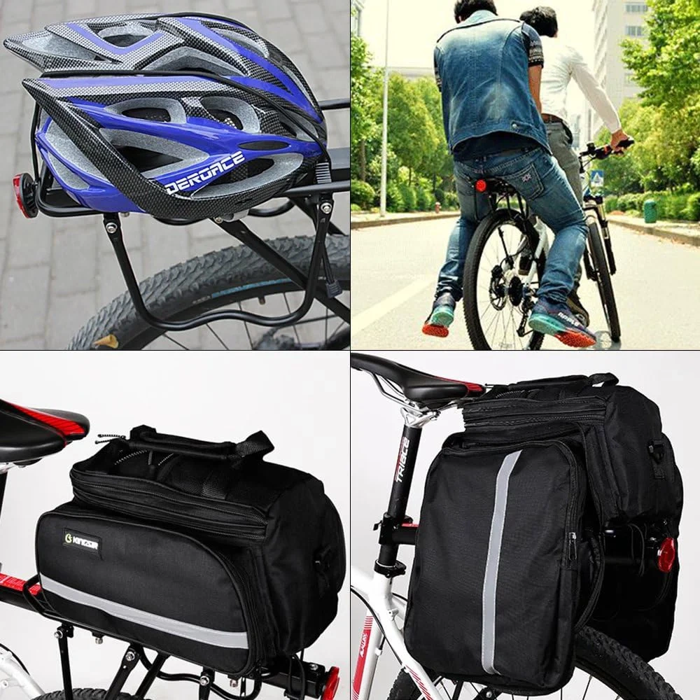 - Ein integrierter hinterer Reflektor und ein elastischer Befestigungsgurt verbessern die Sichtbarkeit bei Dunkelheit und sorgen für Stabilität des transportierten Gepäcks.