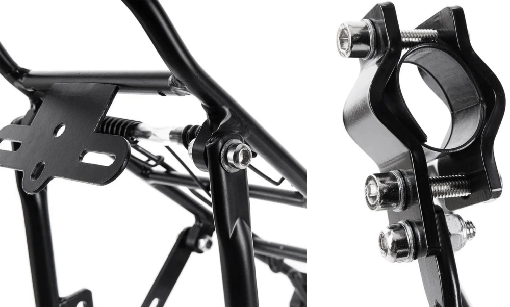 - Zusätzliche Merkmale: Federklappe, seitliche Schutzstreben, Halterung für Rücklicht, Reflektoraufnahme, drei Befestigungspunkte.