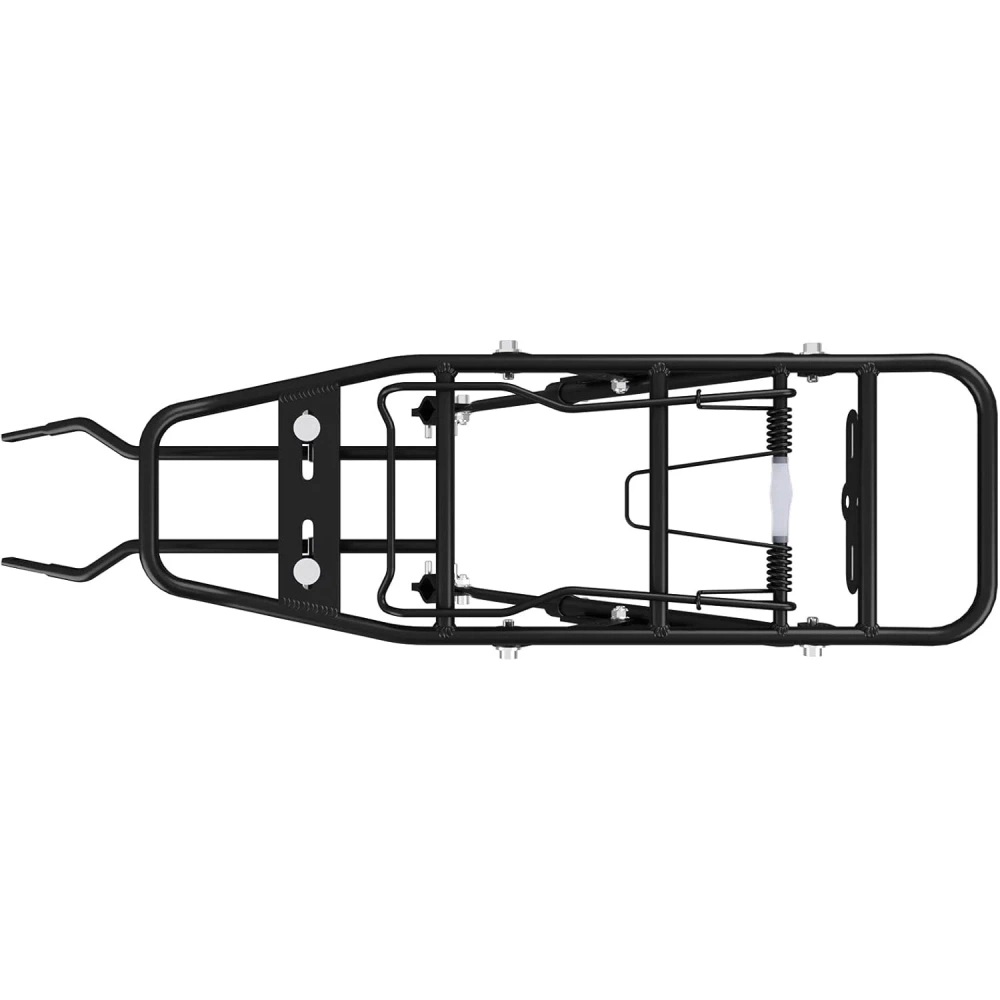 - - Leichte und langlebige, korrosionsbeständige Aluminiumkonstruktion. - Tragfähigkeit bis zu 27 kg ermöglicht den sicheren Transport größeren Gepäcks. - Drei Stützpunkte sorgen für Stabilität während der Fahrt. - Federklappe ermöglicht schnelles Anbringen