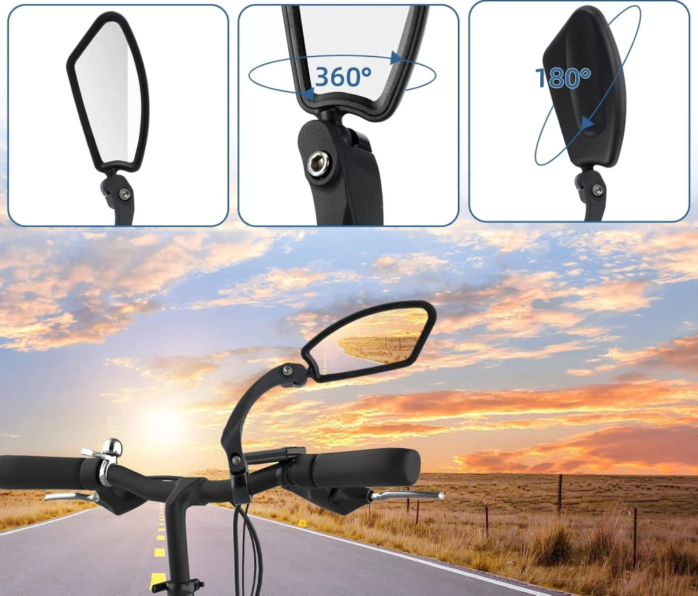 Der Spiegel ist zur Montage am Lenker von Mountainbikes, Citybikes, E-Bikes, Rollern und Scootern geeignet. Er erleichtert das Beobachten des Verkehrs und anderer Verkehrsteilnehmer hinter Ihnen, was die Vorhersehbarkeit und Sicherheit beim Fahren deutlich erhöht.