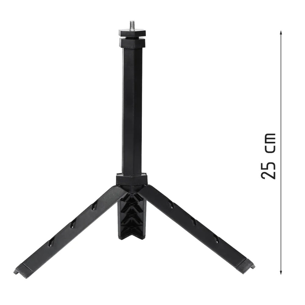 - Montiere das Stativ und wähle die gewünschte Höhe (9 cm oder 25 cm).