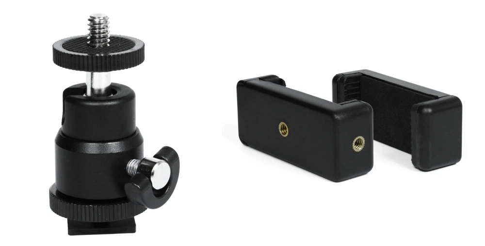 - Az 1 darab, gömbfejre szerelt telefon tartó szabadon állítható pozíciót kínál a telefon vagy kamera számára.