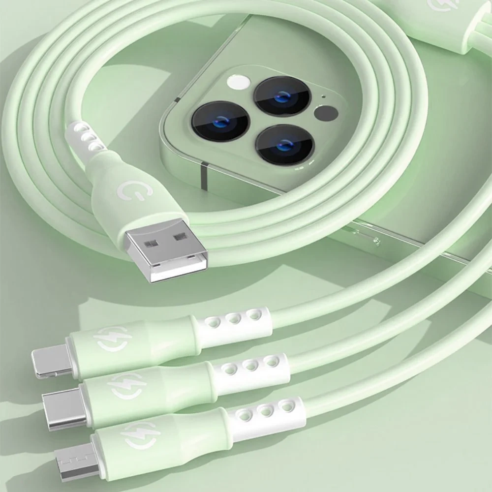 B2-3in1-zöld | USB kábel három töltőcsatlakozóval