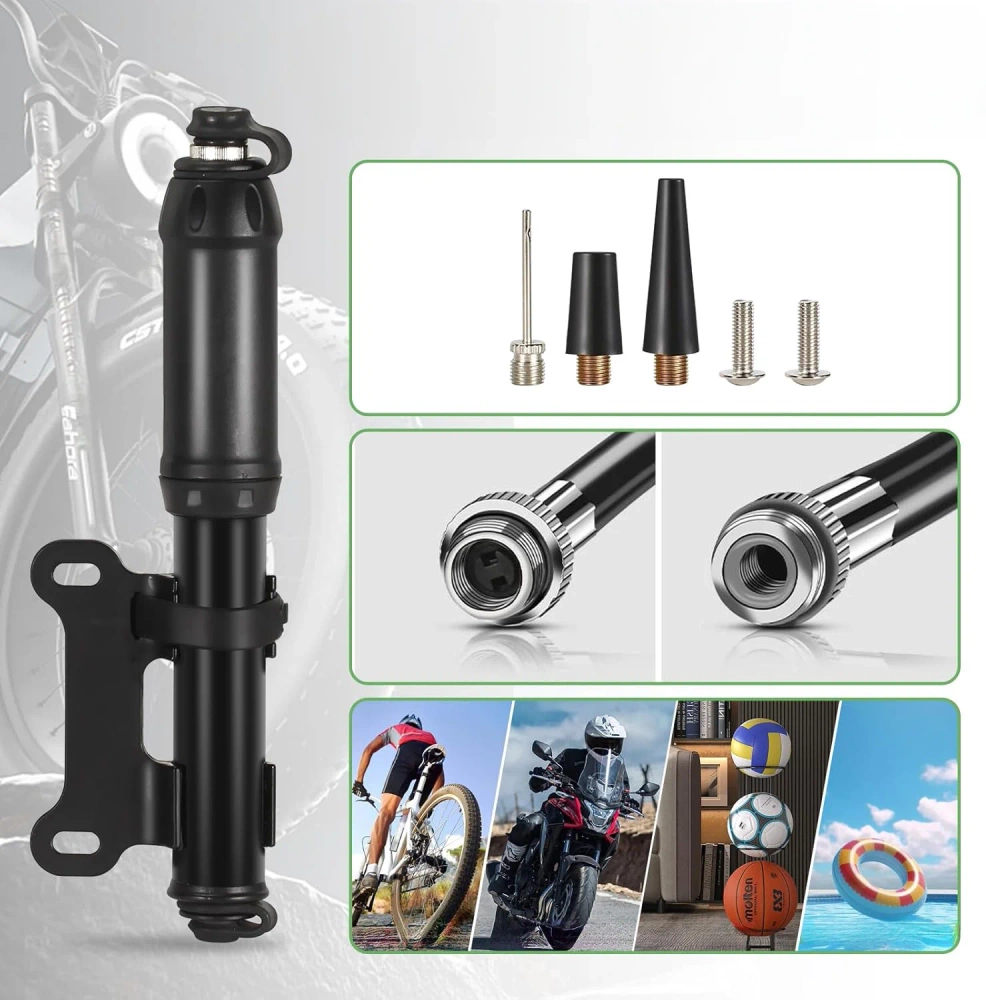 Inoltre, la minipompa compatta con una pressione fino a 8,3 bar (120 PSI) è dotata di un tubo flessibile retrattile e di ugelli universali (per valvole Schrader/Presta, ago a sfera, puntale per materassi), che consentono di gonfiare non solo camere d'aria per biciclette, ma anche attrezzature sportive o da viaggio. La pompa è leggera e facile da trasportare, sempre pronta all'uso in caso di emergenza.