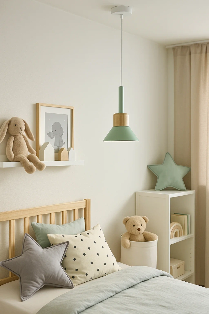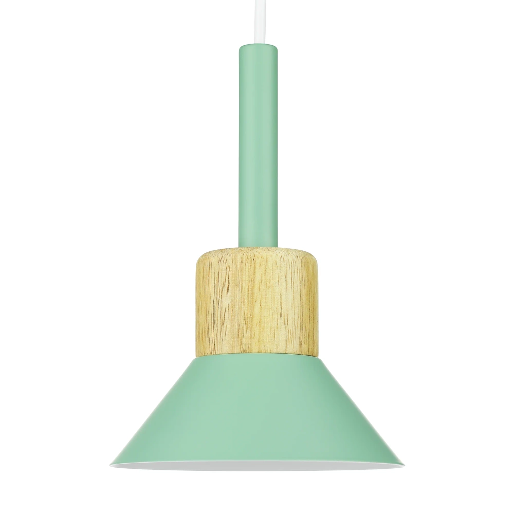 Lampada a sospensione con paralume verde e legno | stile minimalista scandinavo con portalampada E27 | YG-XD002B-G
