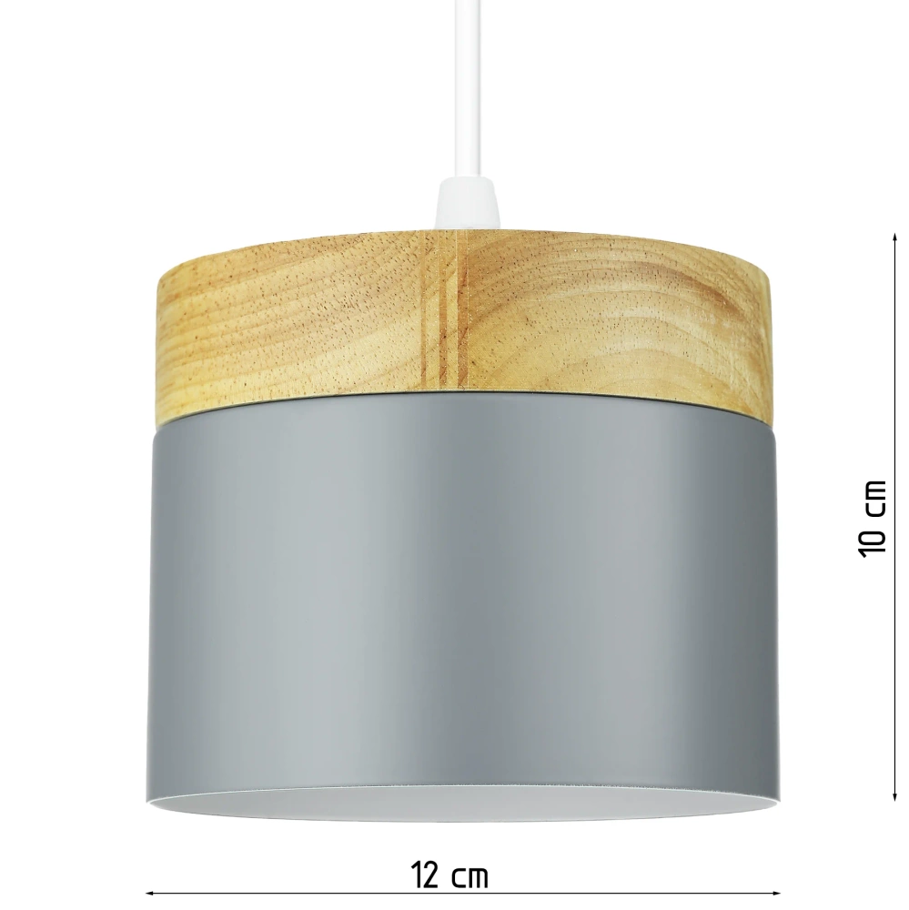 La lampada a sospensione dal design minimalista combina un grigio opaco e caldo con legno naturale, creando un’atmosfera accogliente e piacevole in ogni ambiente.