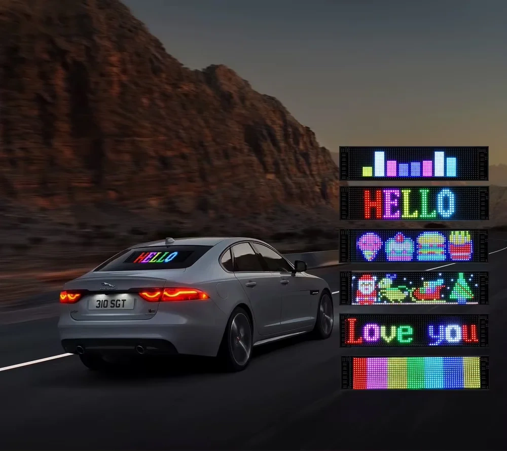La tabella LED offre piena libertà di personalizzazione: puoi progettare scritte, disegni o animazioni pixel per pixel, oppure caricare foto o grafiche direttamente dal telefono.