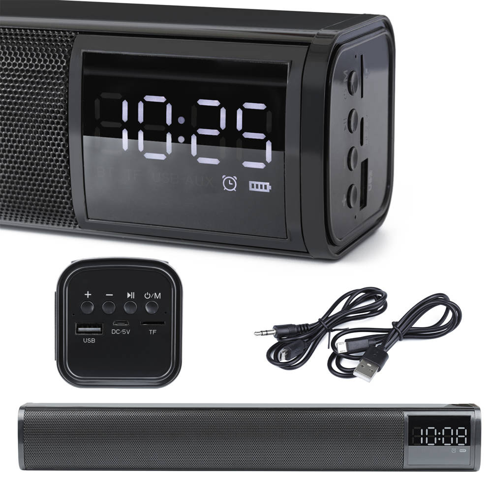 S8 | Belaidė „Bluetooth“ kompiuterio garso juosta | Laikrodis, žadintuvas, AUX, TF | 2200mAh, 10W, 20Hz-20kHz
