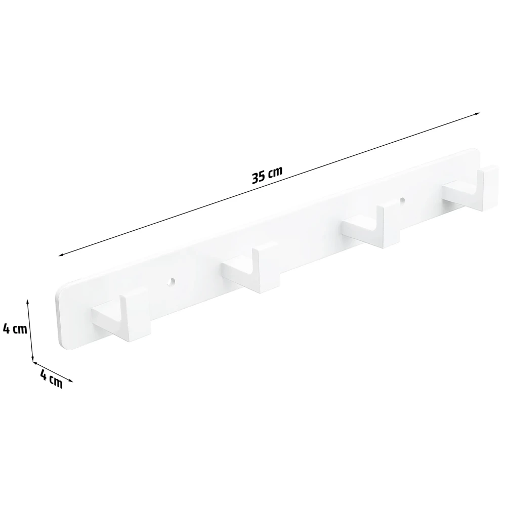 • - Elegantiška balta spalva - Vietą taupantys 4 kabliukai - Universalus naudojimas įvairiose patalpose - Patvari konstrukcija, ilgaamžiškumas - Lengva montuoti, komplekte