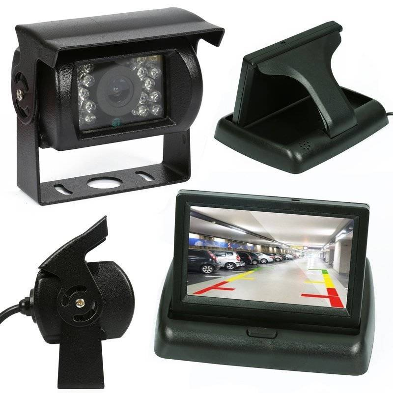2 em 1 | PZ704 PZ470 | Conjunto - câmara de marcha-atrás 18IR 12-24V com monitor LCD TFT dobrável de 4,3"