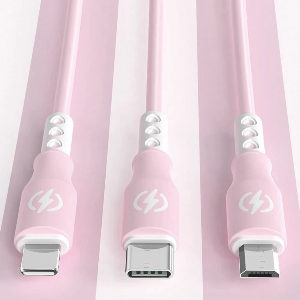 - - Versatilidade 3 em 1 - Tecnologia de carregamento avançada. - Linda cor pastel. -Acabamento em silicone agradável ao toque. -Os plugues reforçados garantem longa vida útil e resistência à quebra e emaranhamento.
