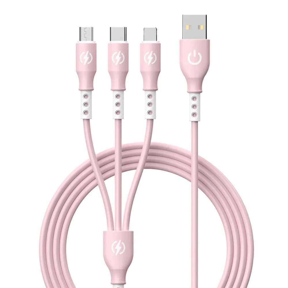 B2-3em1-rosa | Cabo USB com três plugues de carregamento