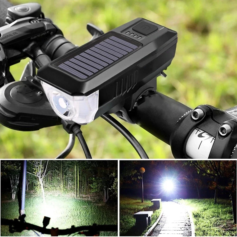 Lampă solară pentru bicicletă cu claxon - Iluminare și siguranță ecologice