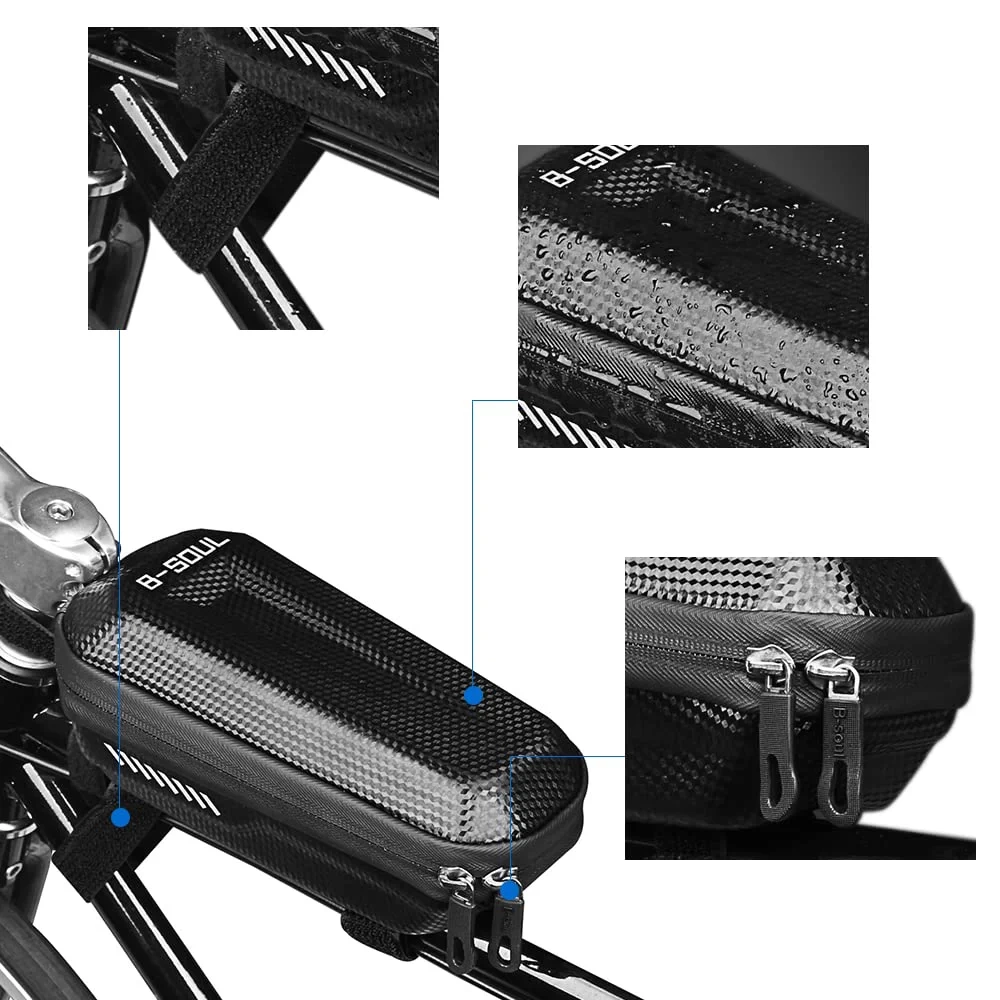 Geantă de cadru de bicicletă impermeabilă din EVA cu reflectoare, 1,2 l | Geantă de bicicletă spațioasă cu încuietoare dublă | 287YB