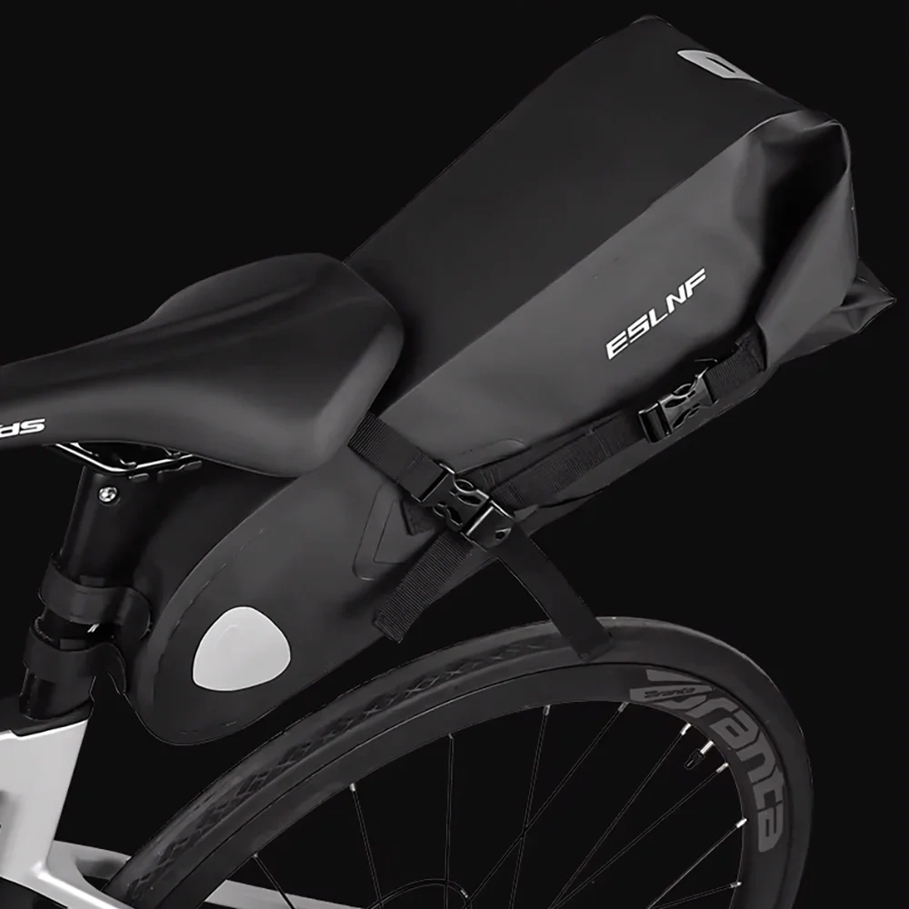 Experimentează o revoluție în depozitarea echipamentului de ciclism cu geanta de șa impermeabilă de 10 litri.
