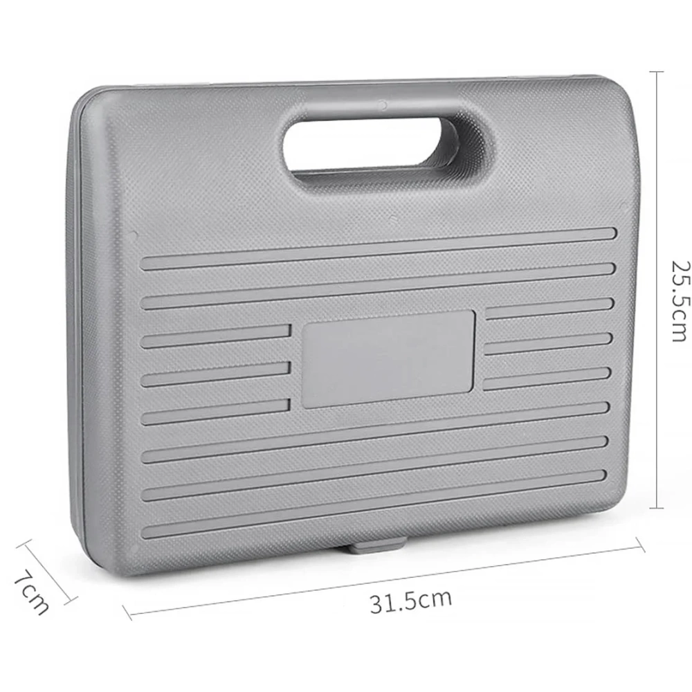 - Valiză compactă Cu mâner facilitează transportul și depozitarea, iar fiecare unealtă are propriul loc dedicat.