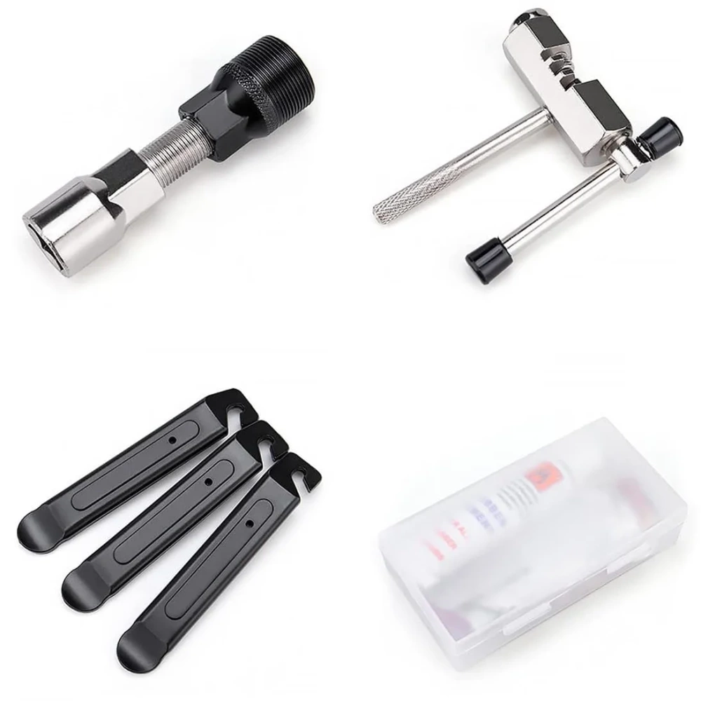 - Setul include 44 de articole care acoperă o gamă largă de nevoi de reparare și întreținere a bicicletelor.