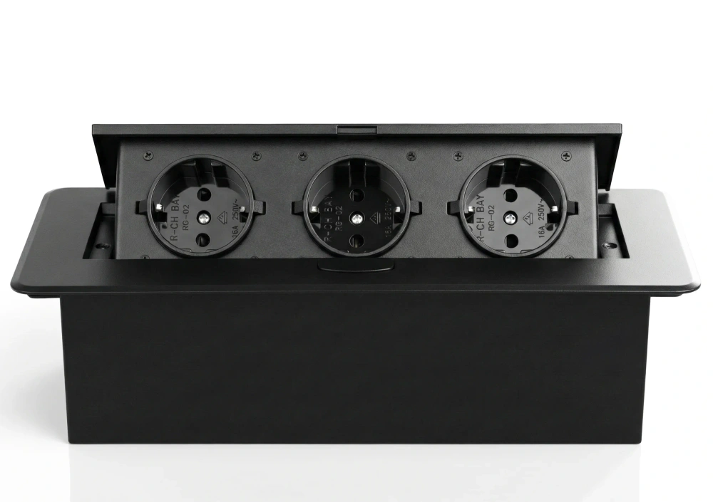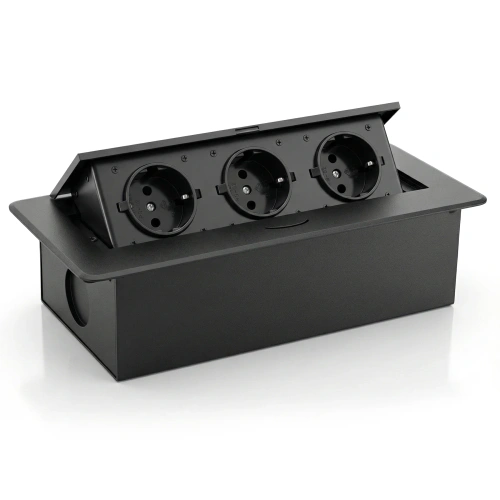 Trojitá uzemnená zásuvka ukrytá v doske stola