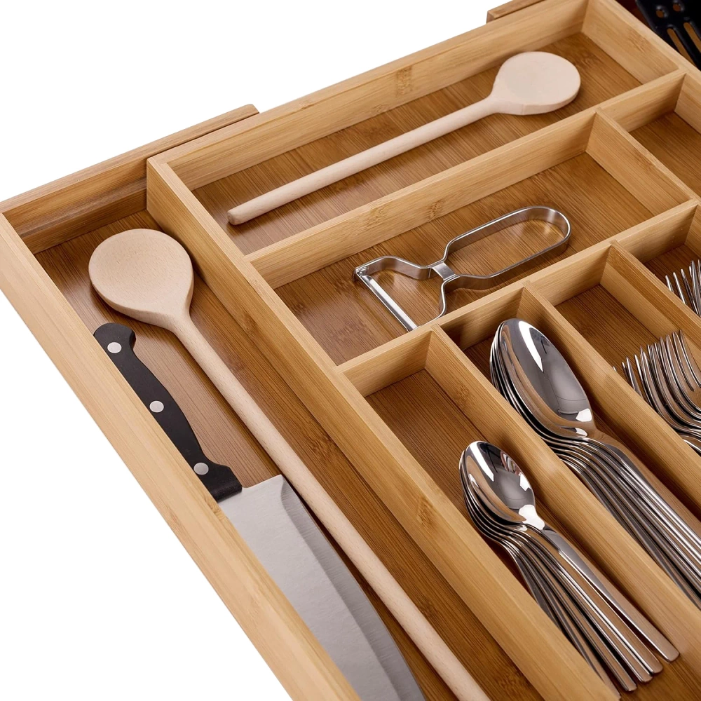 Organizador de cajones de bambú para cubiertos y utensilios de cocina - 9 compartimentos