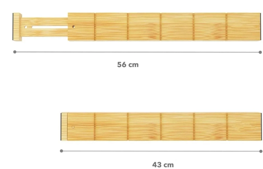 Los divisores se expanden desde aproximadamente 42,5 cm hasta 56 cm, lo que permite un ajuste perfecto a distintos tamaños y profundidades de cajones. Esto le permite organizar fácilmente el espacio en cada cajón, independientemente de su tamaño.