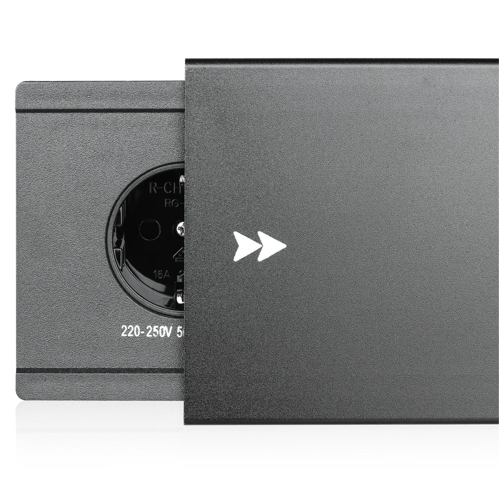 Los materiales utilizados son resistentes a altas temperaturas, humedad y daños mecánicos. Solo tienes que deslizar la tapa para proteger los enchufes del polvo y la suciedad.