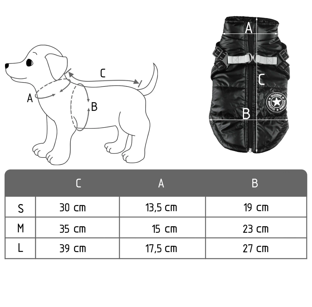 Abrigo de invierno para perro con arnés integrado | talla L | PET-017M-BK