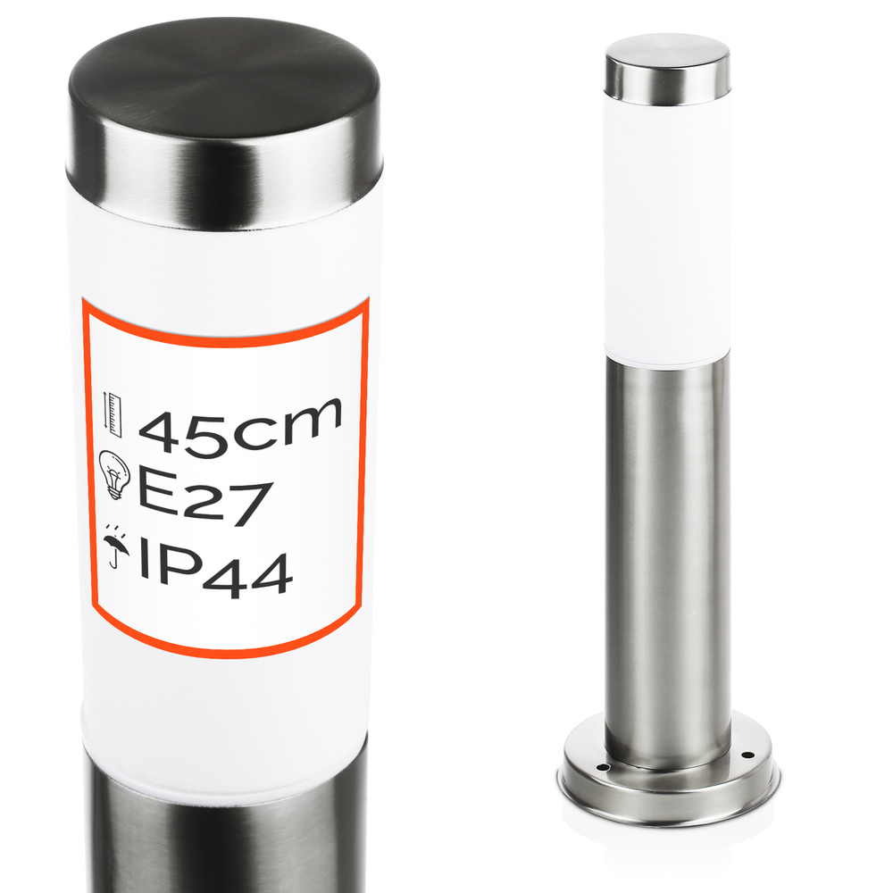 ЛЛР-45СМ | Садовий світильник стоячий, кругла стійка для лампочки E27 | Блок живлення 230В, нержавіюча сталь | нержавіюча сталь, 45см