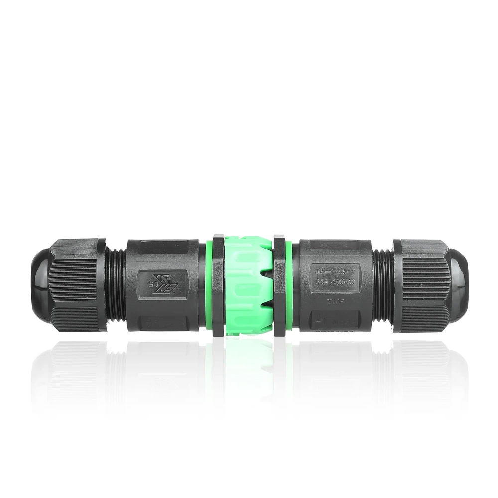 Швидкознімне з'єднання + самозатискне приєднання 3 pin • 0,5 мм² - 2,5 мм² • 24 A • 450 V • IP68 • Ø 4-8 мм або Ø 6-11 мм