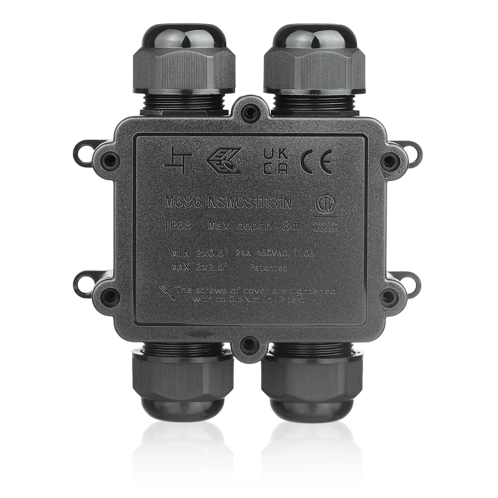 - Клас захисту IP68 – повний захист від води, пилу та забруднень; коробка залишається герметичною навіть після тривалого занурення.